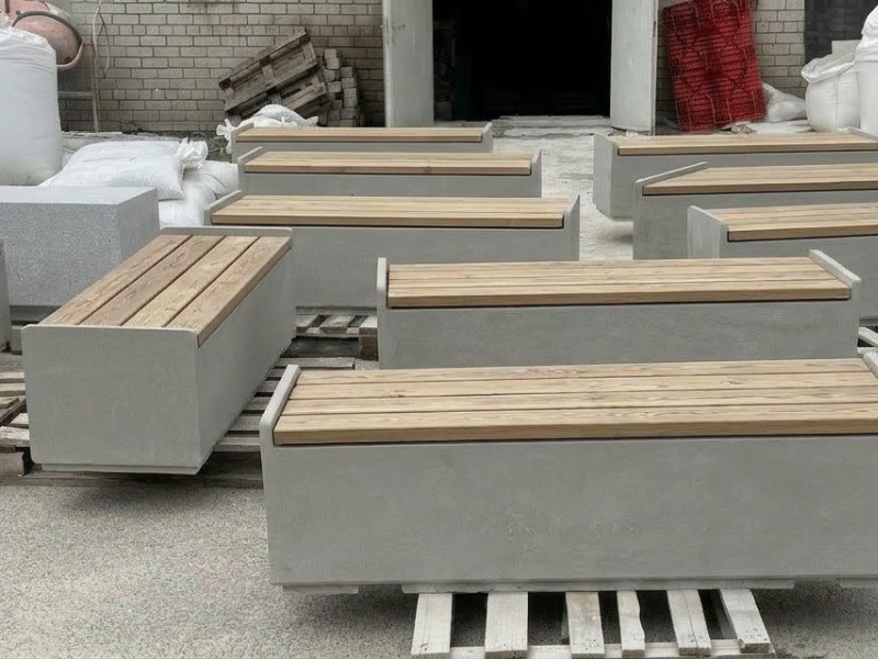 Для изготовления бетонной скамьи используем армированный бетон повышенной прочности. Все изделия имеют контроль усадки и обладают морозостойкостью. Поверхность шлифуется. После этого наносится антивандальная и гидрофобная пропитка. Это дает защиту от влаги, УФ, перепадов температур и истирания.