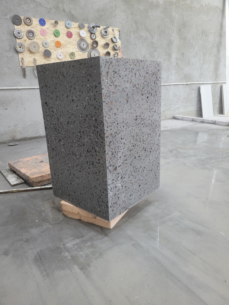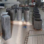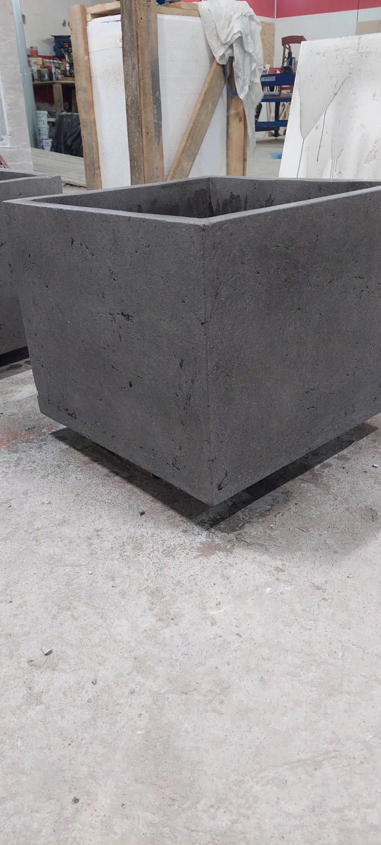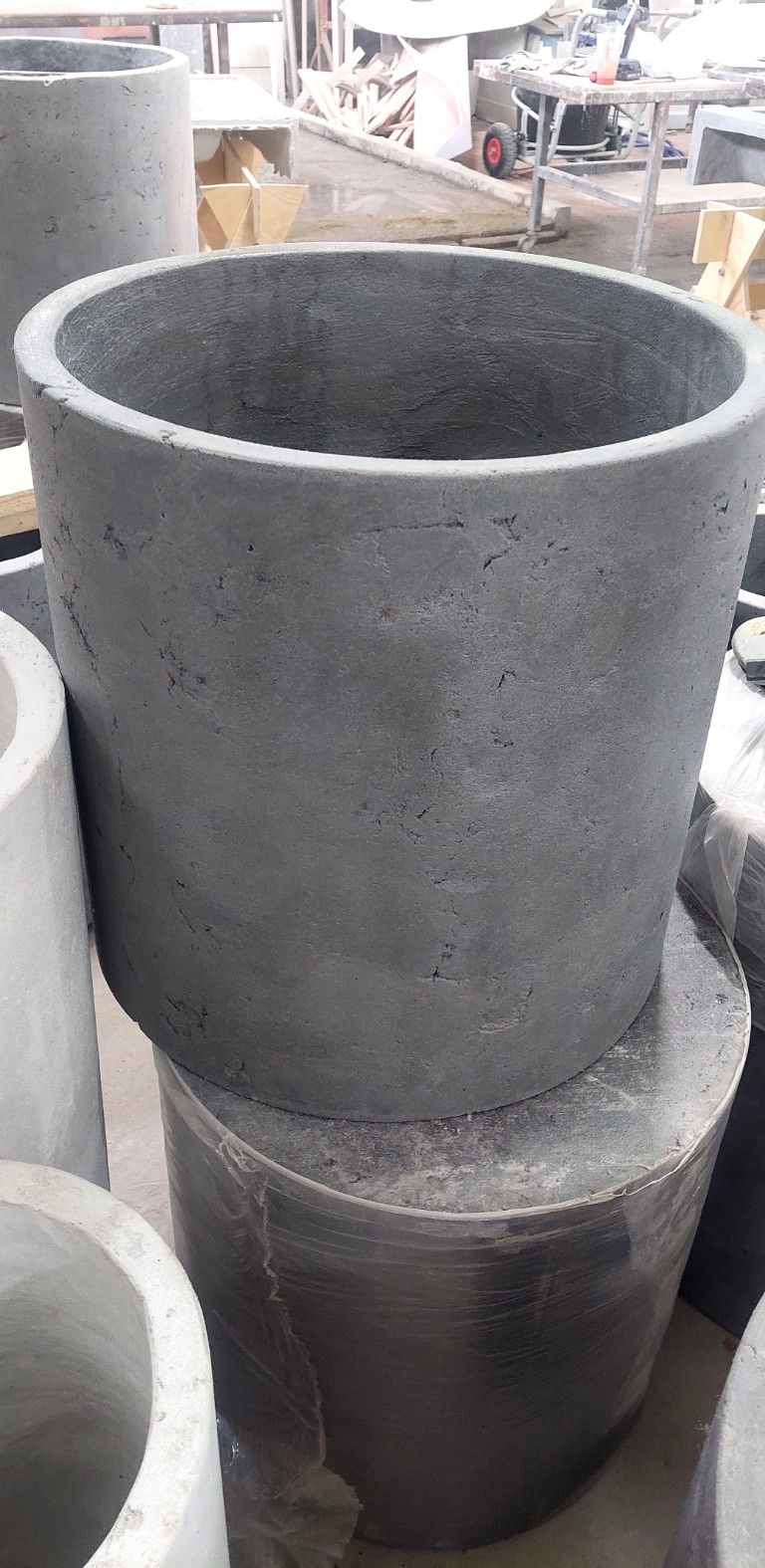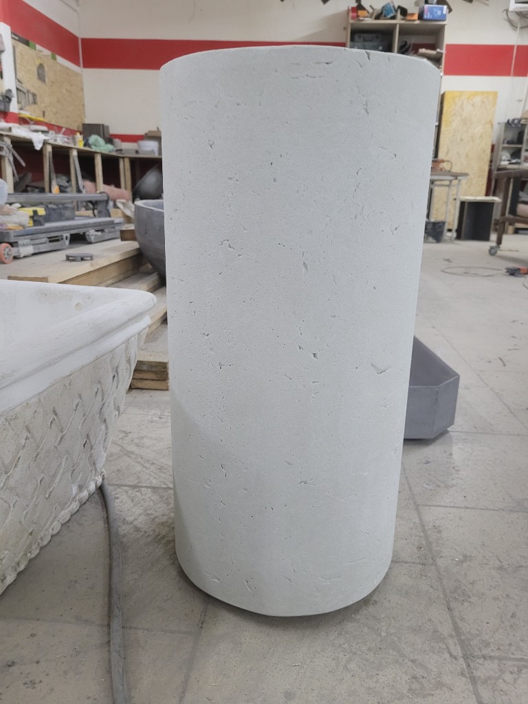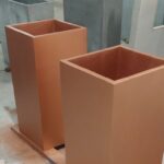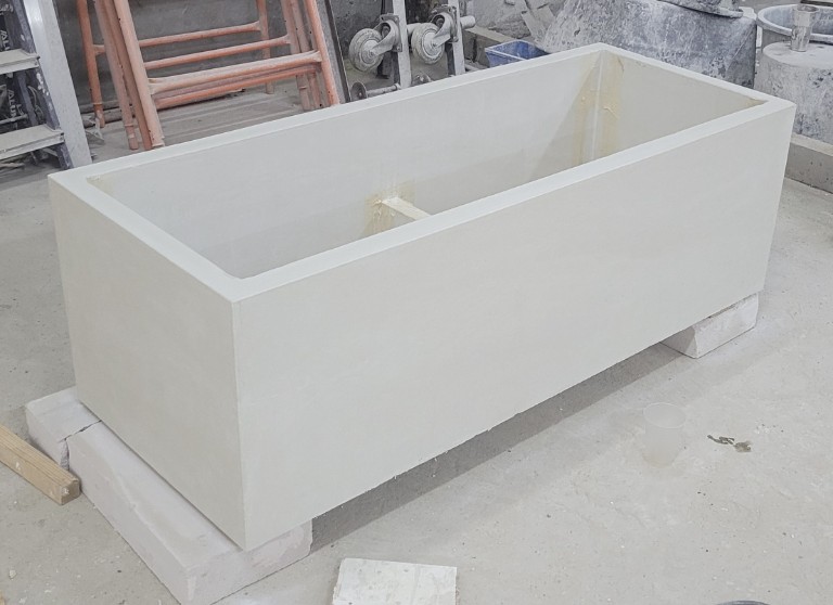 Применяем прочный армированный бетон. Он обладает повышенной морозостойкостью и низким водопоглощением. Бетонные кашпо тщательно шлифуются. Дополнительно обрабатываются гидрофобными пропитками. Это дает защиту от влаги, УФ, реагентов и истирания. Для уличных моделей проводим дополнительную герметизацию. Устанавливаем дренаж.