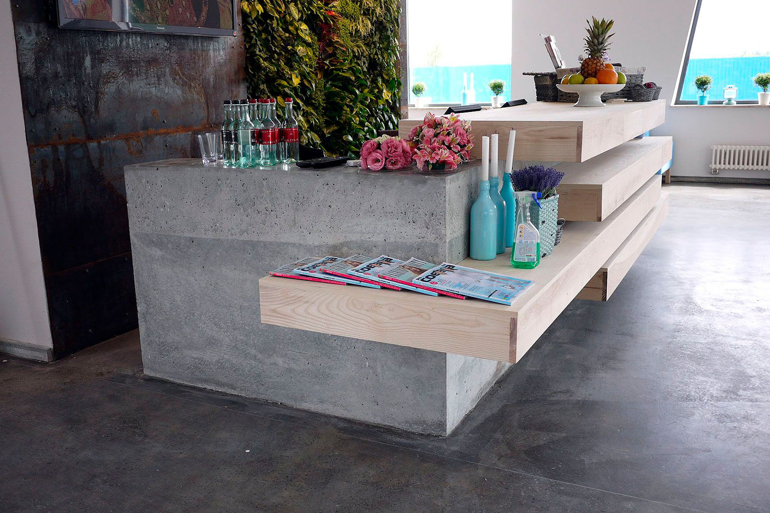 Торговое оборудование из бетона в интерьере